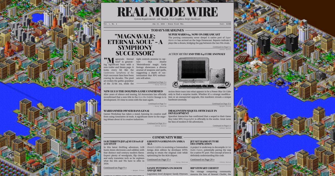 , un journal dédié au rétro-computing qui reprend l’esthétique visuelle de SimCity 2000 ! Ça parle de modems 56K, de graphismes VGA, de ports Dreamcast… Bref, de la nostalgie pure en pixels.