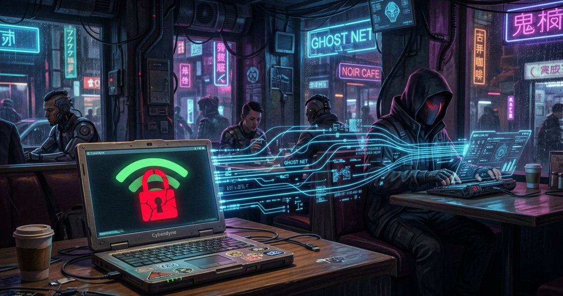 Bon, vous connaissez la théorie du travailleur nomade… vous vous posez dans un café avec votre laptop, vous chopez du WiFi gratuit, et vous vous dites que l’isolation client du routeur vous protègera des autres branquignols connectés au même réseau.