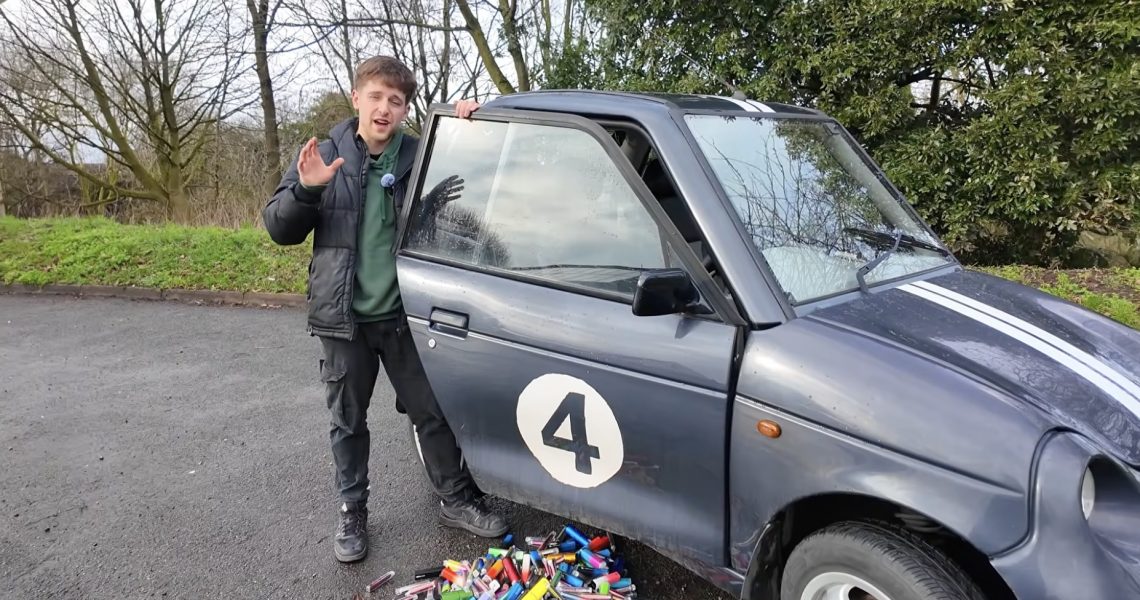 L’initiative vient de Chris Doel, ingénieur chez Jaguar Land Rover et YouTubeur, qui a récupéré les cellules lithium de 500 vapoteuses jetables pour en faire un pack batterie, avec l’idée improbable d’alimenter une Reva G-Wiz, la micro-voiture électrique des années 2000. Il a roulé une trentaine de kilomètres en conditions réelles, passage au drive compris.