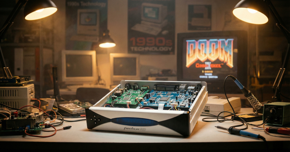 Enorme nouvelle pour tous les amateurs de rétro-ingénierie et très mauvaise nouvelle pour Free ! Au 39C3 (le Chaos Communication Congress de cette année), un chercheur français du nom de Frédéric Hoguin (que je salue) a présenté un talk absolument dingue sur le hack de la Freebox HD. Et tenez-vous bien, l’une des failles utilisées se trouve dans… le port de Doom intégré à la box !