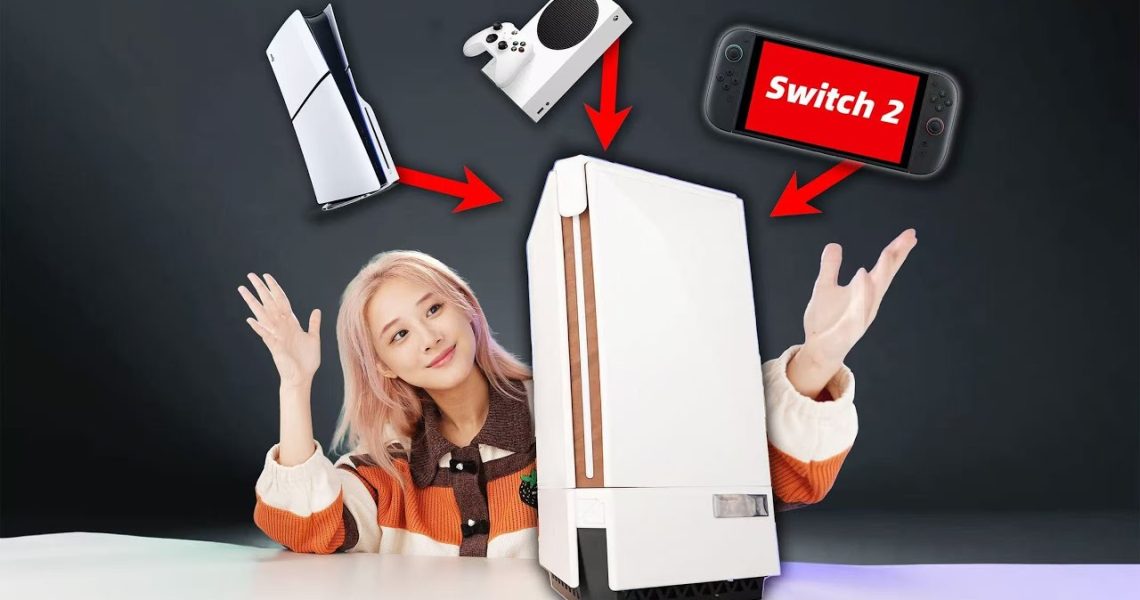 Le concept c’est de faire rentrer une PlayStation 5, une Xbox Series X sans oublier la petite dernière de Nintendo, j’ai nommé la Switch 2 dans la même boîte comme papa dans la voisi… euh pardon je m’égare ^^. Oui les 3 consoles dans un seul boîtier ! Tu parles d’une mission ! Ça me rappelle la grande époque héroïque du