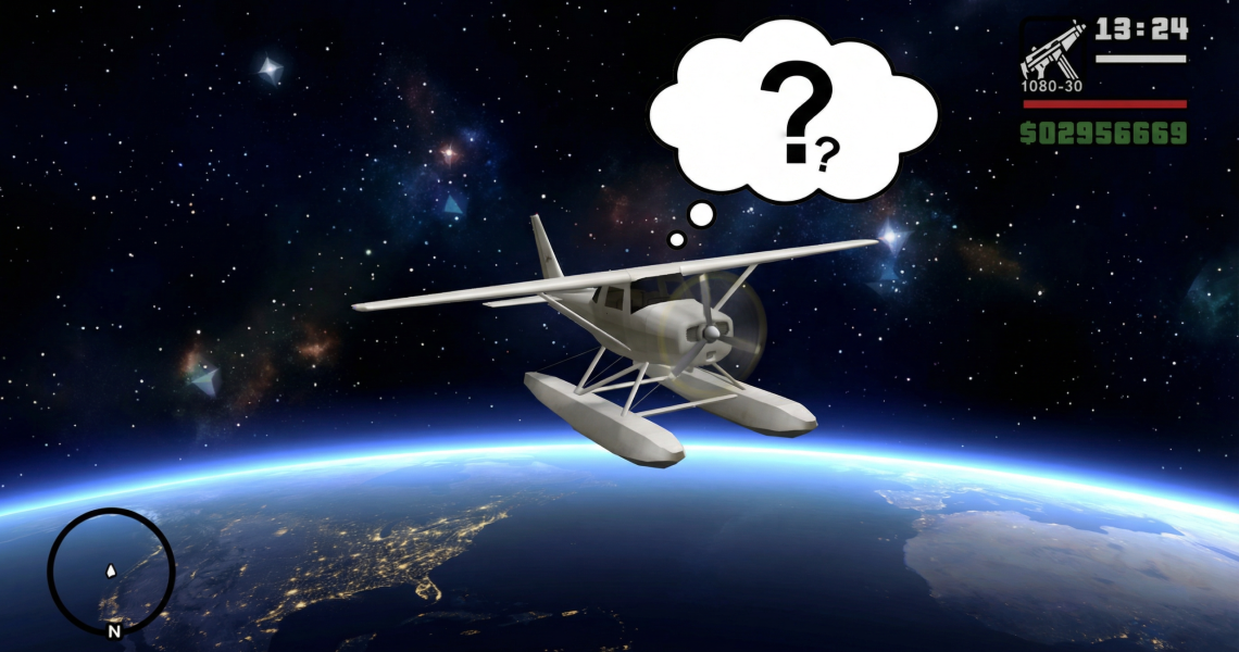 , a publié une analyse technique sur ce bug zombie. En gros, quand vous essayez de spawn le Skimmer sur Windows 11 24H2, l’hydravion devient tellement gigantesque qu’il n’est même plus rendu à l’écran. Et si vous forcez CJ à monter dedans via la console, son altitude affichée explose à environ 1,087 quadrillion d’années-lumière. Beaucoup plus loin que n’importe quoi dans l’univers observable…