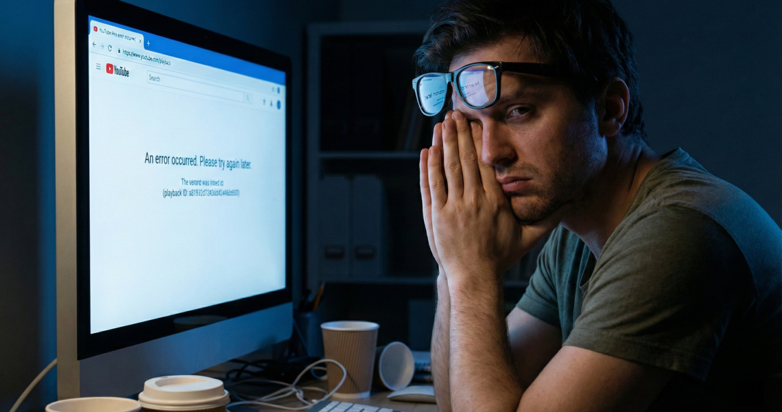 Et là, en cherchant pourquoi mes scripts plantaient, je suis tombé sur un truc qui m’a bien fait rire jaune. Vous savez le fameux message "An error occurred. Please try again later" qui s’affiche parfois quand vous matez une vidéo ? J’ai d’abord cru que c’était un bug côté serveur chez Google mais QUE NENNI !